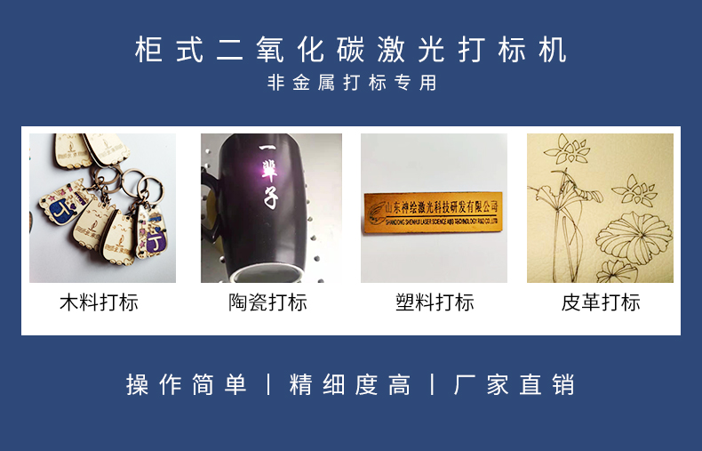 co2激光打标机适用于纸张,皮革,织物,有机玻璃,环氧树脂,亚克力,羊毛产品,塑料,陶瓷,水晶,玉器,竹木产品。广泛应用于各种消费产品,食品包装,饮料包装,医药包装,建筑陶瓷,服装辅料,皮革,纺织物切割,工艺礼品,橡胶制品,外壳铭牌,牛仔布,家具等行业。