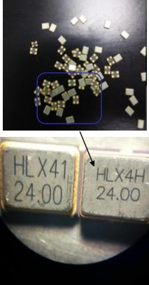 在晶振上标刻数字文字,单线打黑,线条匀称,无重点,线宽30um左右。