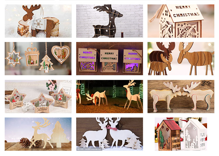竹木圣诞用品、驯鹿、圣诞树、挂件、灯笼激光雕刻样品图