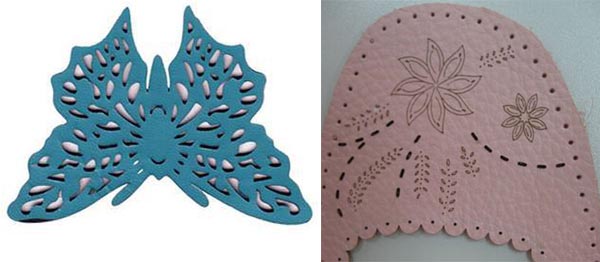 激光镂空皮革是光斑照射在皮革上时,使皮革很快被加热至汽化温度,蒸发形成孔洞。随着光束对皮革的移动,使孔洞连续形成宽度很窄的切缝,完成对皮革的切割,形成自己想要的图案或文字,精度好、效率高。