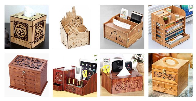 激光雕刻切割木收纳盒、文件架的样品图: