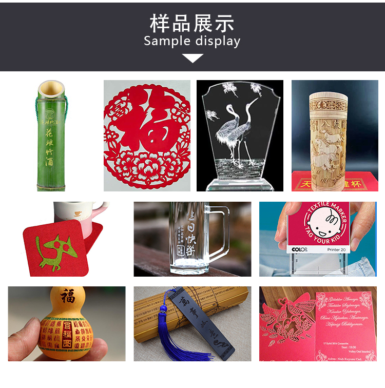 应用材料:适用于双色板、有机玻璃、玻璃、亚克力、木板、纸张、皮革、布料、橡皮、大理石、花岗石、瓷砖、贝壳、葫芦、酒桶、印章等非金属材料。